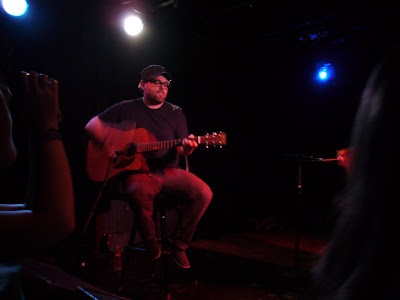 The wait wasn't too bad and pretty soon the doors opened. I got a place with a good view in the second row of the audience. Soon Justin Pierre and Josh Cain arrived on stage. They also had Claudio with them to keep the rhythm. The banter was astounding. I haven't seen such great banter since a Tegan and Sara concert. Justin was talking about his nervousness and mocking the fact that he was rocking out on an acoustic guitar. It was epic to the maximum. He was also pretending to kick Claudio.